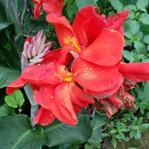 大花美人蕉:多年生草本植物 ,株高可达100厘米-150厘米,根茎肥大有块状的地下茎 ;叶大 ,螺…