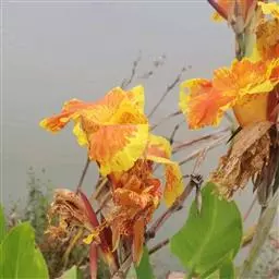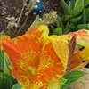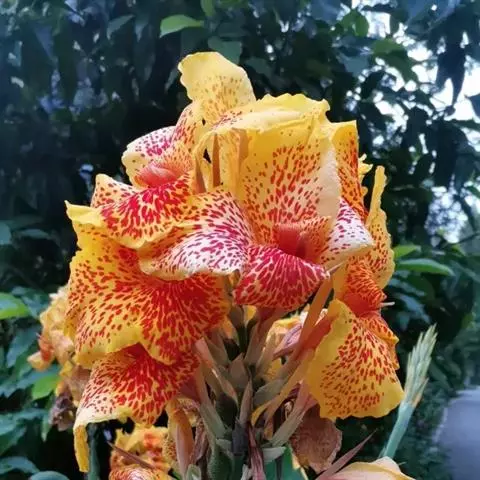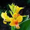 引自南美,是美人蕉属类中少见稀世珍品,因在同一枝花茎上争奇斗艳、开出大红与五星艳黄两种颜色的花而得名,更具观赏价值的是花瓣红黄各半,同株异渲。更奇之处是红花瓣上点缀着鲜黄星点,五星黄花瓣装点着鲜红光斑。双色鸳鸯美人蕉株矮状,叶节密生,叶片大而浓绿,四片叶时即可现蕾开花。是盆栽佳品,也适宜城区、旅游景区、生活区、公园及行道绿化。