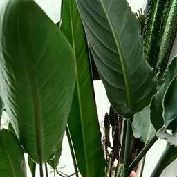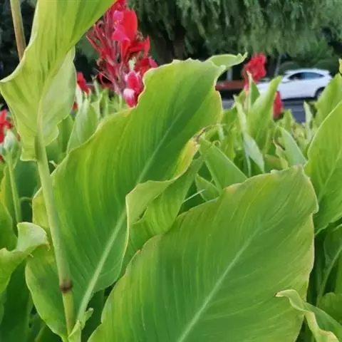 美人蕉植株全部绿色,高可达1.5米。叶片卵状长圆形,长10-30厘米,宽达10厘米。