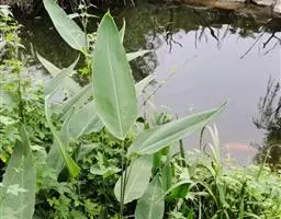 蕉芋:为美人蕉科的植物。多年生草本植物,高达3米。具块状根茎。茎紫色,直立,粗壮。叶互生;叶柄短;…