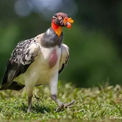 王鹫:是美洲鹫科、王鹫属大型食腐鸟类。体型很大,体长约78厘米。头部裸露,色彩极鲜艳醒目。嗉囊发达。…