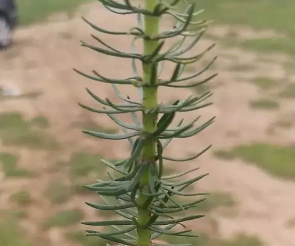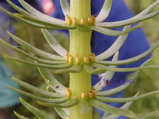 杉叶藻(学名:Hippuris vulgaris L. )是杉叶藻科、杉叶藻属多年生水生草本,全株光滑无毛。茎直立,常带紫红色,高可达150厘米,上部不分枝,下部合轴分枝,生于泥中。叶片条形,轮生,两型,无柄,沉水中的根茎粗大,圆柱形,花细小,两性,稀单性,无梗,单生叶腋;萼全缘,常带紫色;无花盘;雄蕊生于子房上略偏一侧;花丝细,常短于花柱,被疏毛或无毛,花药红色,椭圆形,子房下位,椭圆形,花柱宿存,针状,雌蕊先熟,主要为风媒传粉。果为小坚果状,卵状椭圆形,4-9月开花,5-10月结果。