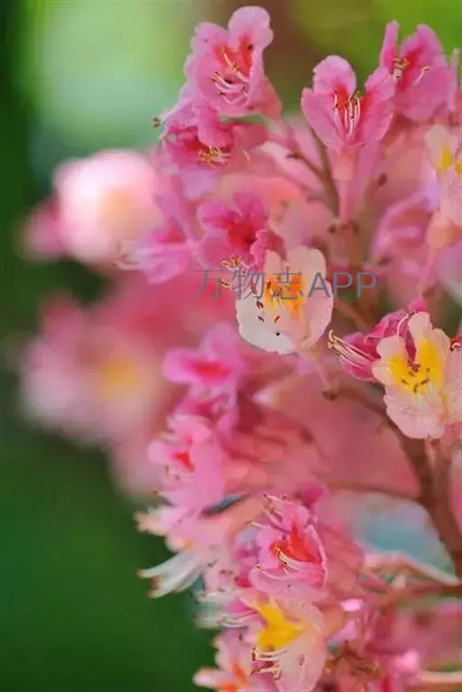 花期5-6月,花小为粉红色至深红色,花时红色硕大的顶生圆锥花序竖于叶簇中,似一个华丽的大烛台,缀满树冠,绿树红妆,非常美丽,十分壮观。果球形或倒卵形,于9月下旬至10月中下旬成熟。
