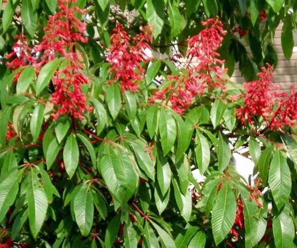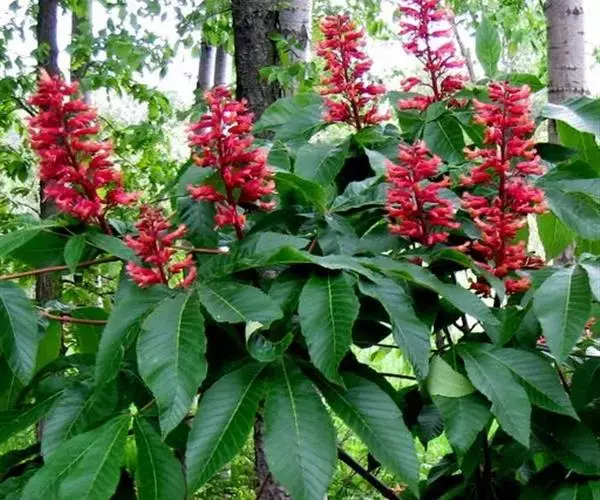 红花七叶树姿态壮丽,树冠丰满,叶大奇特、形美,顶生红色总状花序,直立于叶簇之中,火红似华丽的烛台,十分美观。为世界园林观赏绿化树种之一,可作为行道树和庭院观赏树,亦可配置于公园、庭院、厂矿和学校作为景观点缀树种。