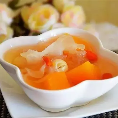 如果在炒南瓜的过程中太干,也可以沿炒锅边缘调入少许水或高汤 。