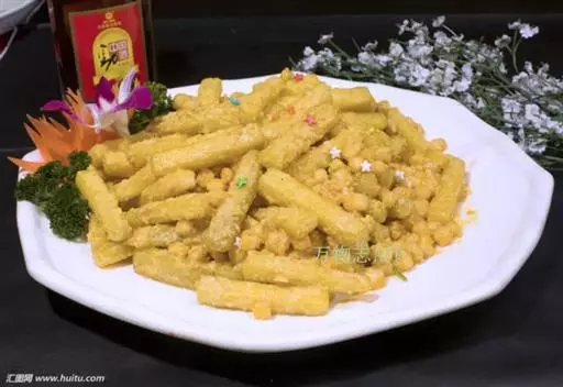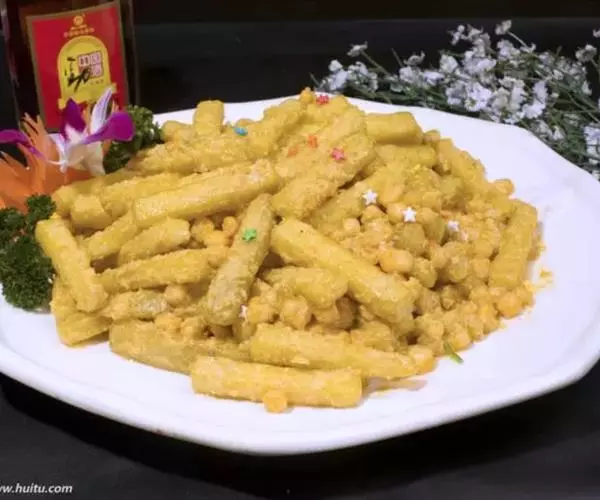3.大火加热炒锅中的油,爆香香葱段,咸鸭蛋黄白糖 鸡精,味精,然后用手勺不间断的搅拌,待到白糖融化之后放入炸好的南瓜条,颠覆几次南瓜条上沾满蛋黄之后便可出锅小贴士:
