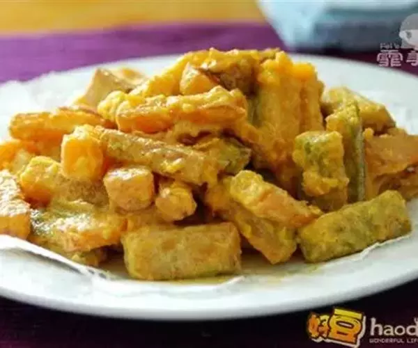 如果觉得炸东西比较麻烦。可以把南瓜条过水稍微煮一下再和鸭蛋黄炒。味道也还行。怕麻烦的可以这么试试
