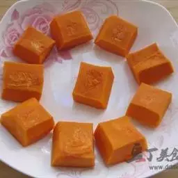 1.南瓜削皮去籽,切成块待用。