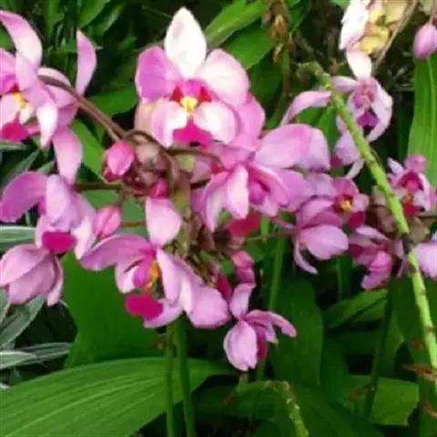 紫花苞舌兰:植株高达1米。假鳞茎卵状圆锥形,具3-5枚叶。叶质地薄,淡绿色,狭长,具折扇状的脉。…