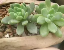 蓝黛莲是一种景天科厚叶草属植物。叶片呈略扁的圆柱形,排列成莲座状;颜色为灰绿色,…