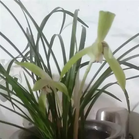 建兰素花,绿白色,清香,一枝开花5至12朵。叶色钢青,细而挺拔,有铮铮铁骨之相,所以叫铁骨素。在日…