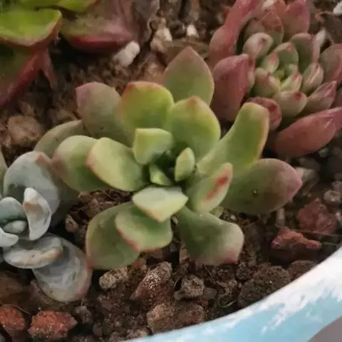 女雏是景天科石莲花属的多肉植物。特征是小巧的株形和橙粉色叶缘。极易生侧芽,…