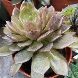 大和锦是景天科拟石莲花属的多肉植物。肉质叶排成紧密的莲座状,广卵形至散三角卵形,背面突起呈龙骨状,…