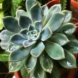 蓝石莲是景天科、拟石莲花属的多肉植物。茎部粗壮,成熟植株茎部木质化。叶片莲座型密集排列,株径不会很大,…