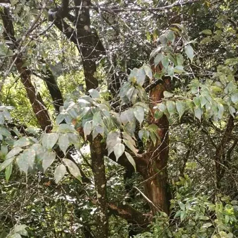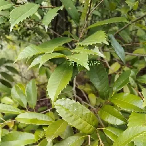 乔木,高10-20米,胸径20-60厘米,树皮纵裂,片状脱落,枝、叶均无毛。叶厚纸质或近革质,披针形,稀卵形,长7-18厘米,宽2-5厘米,顶部长尖,基部近于圆或短尖,叶缘至少在中部以上有锐裂齿,中脉在叶面凸起,侧脉每边9-12条,直达齿端,在叶面稍凸起,网状叶脉明显,两面同色;叶柄长1.5-2厘米。