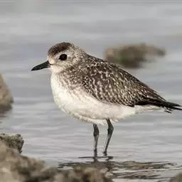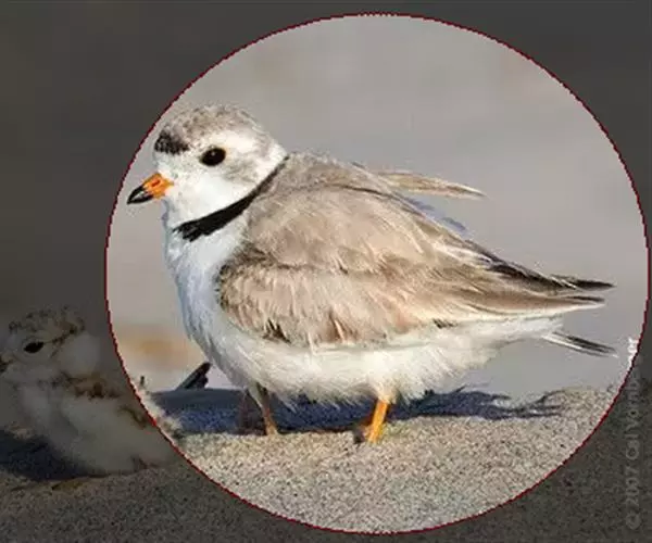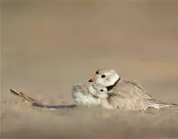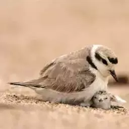 笛鸻(学名:Charadrius melodus):属小型涉禽。呈沙色。大小如麻雀,跗蹠修长,胫下部亦裸出。中趾最长,趾间具蹼或不具蹼,后趾形小或退化。翅形尖长,第1枚初级飞羽退化,形狭窄,甚短小;第2枚初级飞羽较第3枚长或者等长。三级飞羽特长。尾形短圆,尾羽12枚。