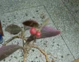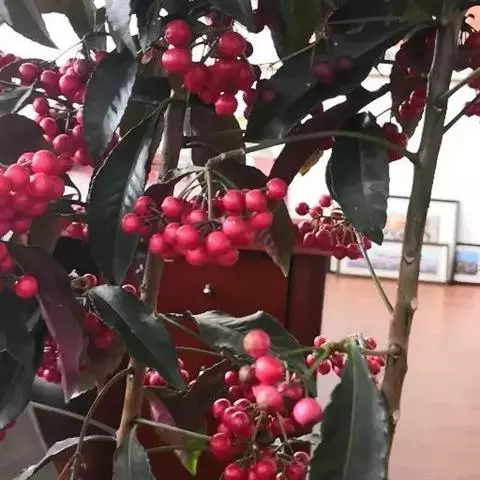 果球形,直径约6毫米,鲜红色,具腺点,宿存萼与果梗通常为紫红色。花期6-7月,果期10-12月。