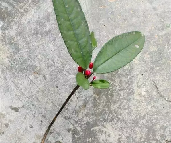 出自《本草图经》:百两金,叶似荔枝,初生背面俱青,结花实后,背紫面青。苗高二、三尺,有干如木,…
