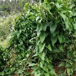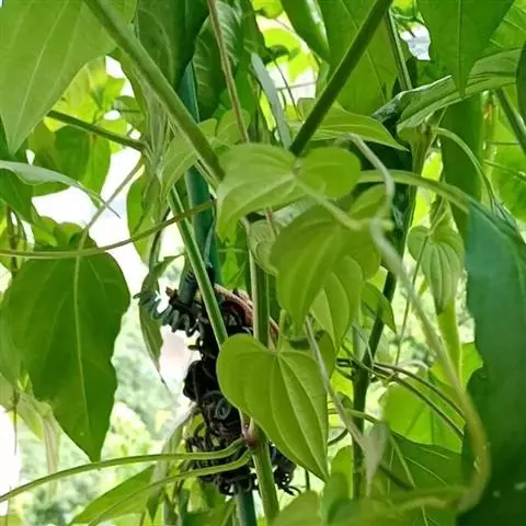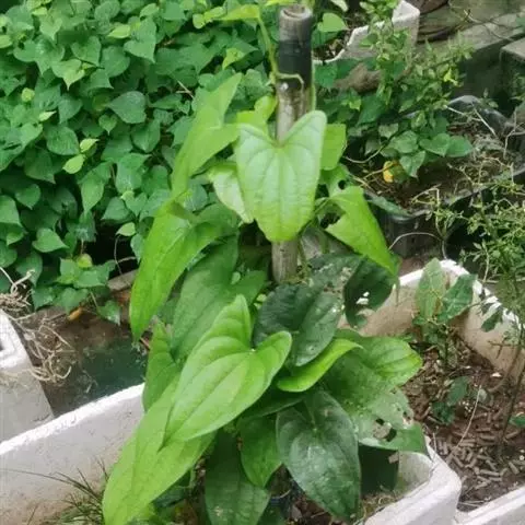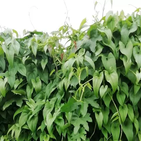 架式栽培:盾叶薯蓣播种出苗后,要及时搭架,扶苗上架,以提高叶片光合作用。搭架材料以毛竹、杂树条为好,竿长1.5米为宜,立竿要插稳,横竿要扎紧,人字交叉形。可提高株产量1.5-3倍。