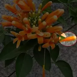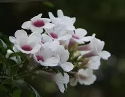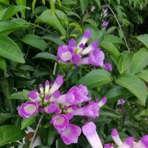 粉花凌霄 K.Schum.)是紫葳科魔盒凌霄属的落叶藤本植物。奇数羽状复叶对生,小叶全缘,…