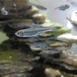 剑尾鱼 剑尾鱼受精结束后获得的受精卵要及时捞出,剔除异物,将眼观有白色小斑点、畸形异常卵去除。然后将受精卵移入培养箱中进行孵化,温度为25~28℃,温差不能够超过0.5℃。这期间可在解剖镜下观察胚胎的发育状况,大约经过2天孵化,小鱼就可出膜,刚出膜的鱼苗游泳能力低,静卧于水底。