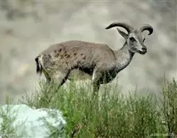 盘羊:雄性肩高可达120厘米,体重可达200千克。雄性的弯角粗大,长达1米以上,向下扭曲呈螺旋状,…