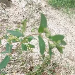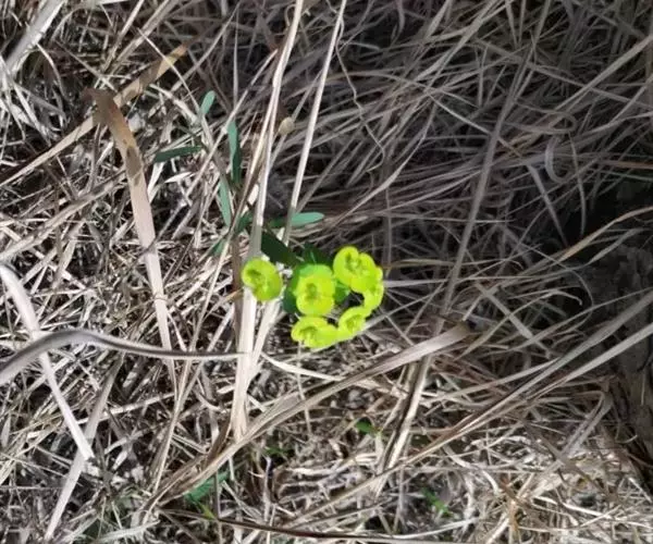 花序单生于二歧分枝的顶端,基部无柄;总苞钟状,高约3毫米,直径2.5-3.0毫米,边缘5裂,裂片半圆形至三角形,边缘及内侧被毛;腺体4,新月形,两端具角,角长而尖或短而钝,变异幅度较大,褐色。雄花多枚,苞片宽线形,无毛;雌花1枚,子房柄明显伸出总苞之外;子房光滑无毛;花柱3,分离;柱头2裂。