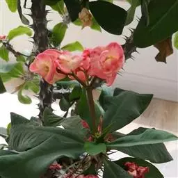 虎刺梅:别称铁海棠,是蔓生灌木植物。茎多分枝,长60-100厘米,直径5-10毫米,具纵棱,密生硬…