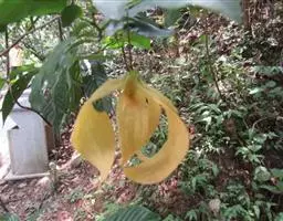 大花紫玉盘(Uvaria grandifloraRoxb.)就是一种典型能用叶、花、果实等感知外界气温变化的奇花异果植物。这种植物分布在中国广东中南部、广西东南部、南亚、东南亚等一些国家热带、亚热带地区。其性状为灌木状藤本,开花时,花瓣6片,呈内外两轮排列,紫红色至深红色,花大艳丽,有香味。果实聚合生于一个果柄上,单果多达20数以上。幼果至熟果颜色从绿色—灰褐色—橙黄色渐变。