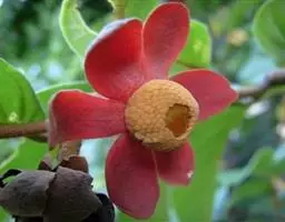 花单朵与叶对生,深红或紫红色,茎达9cm,花梗长5mm,苞片2,萼片膜质;花瓣之长和宽为萼片的2~3倍,内轮花瓣比外轮者大。果圆柱状,长4~6cm,径1.5~2.5cm,顶端具尖头,具长果柄。