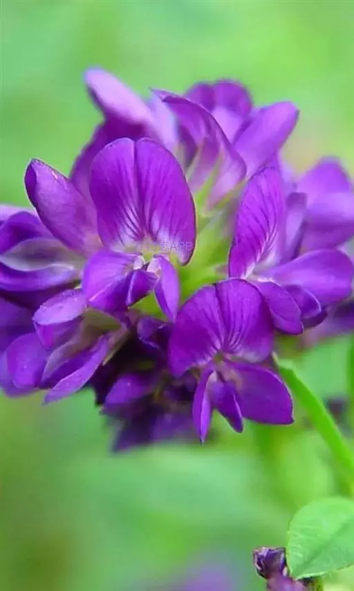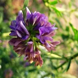 紫苜蓿(拉丁学名:Medicago sativa L.),是豆科苜蓿属植物。多年生草本,多分枝,高30-100厘米。叶具3小叶;小叶倒卵形或倒披针形,长1-2厘米,宽约0.5厘米,先端圆,中肋稍突出,上部叶缘有锯齿,两面有白色长柔毛;小叶柄长约1毫米,有毛;托叶披针形,先端尖,有柔毛,长约5毫米。总状花序腋生;花萼有柔毛,萼齿狭披针形,急尖;花冠紫色,长于花萼。荚果螺旋形,有疏毛,先端有喙,有种子数粒;种子肾形,黄褐色。 在中国为栽培植物;现在世界各国都有栽种。为优良饲料植物;又可作绿肥;种子含油10%左右。