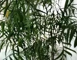 凤尾竹 Raeusch. ex Schult. ’Fernleaf’ R. A. Young)是禾本科,簕竹属孝顺竹的变种。植株较高大,杆高可达6米,竿中空,小枝稍下弯,下部挺直,绿色;竿壁稍薄;节处稍隆起,无毛;叶鞘无毛,纵肋稍隆起,背部具脊;叶耳肾形,边缘具波曲状细长繸毛;叶舌圆拱形,叶片线形,上表面无毛,下表面粉绿而密被短柔毛,小穗含小花,中间小花为两性;外稃两侧稍不对称,长圆状披针形,先端急尖;内稃线形,脊上被短纤毛,花药紫色,子房卵球形,羽毛状。成熟颖果未见。原产中国,华东、华南、西南以至台湾、香港均有栽培。凤尾竹喜温暖、湿润和阳光充足的环境,耐寒。宜土层深厚、肥沃、疏松的微酸性壤土。该种观赏价值较高,宜作庭院丛栽,也可作盆景植物。全草或根入药,味淡、微苦,性寒,有清热利湿、凉血止血、消肿解毒功效,可治痢疾、泄泻等多种病症。凤尾