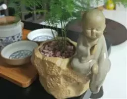 盆栽除采用一般方法外,还可利用其自身的特性作悬吊或攀缘栽植。利用气生根作攀缘栽植时,可先在盆中放棕皮柱或形态较好的枯树干,扎成亭、塔、花篮等造型型。养护上也很简单,浇水保持土壤湿润,并经常向棕皮柱或支架上喷水增加湿度。在生长期,第月施1-2次肥水,并应避免烈日直射,以半阴或朋亮的散射光照射为佳。繁殖在生长季用扦插或压条法都容易成活。