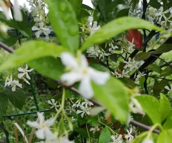 ⒊容易培育,管理粗放。络石一般采用扦插繁殖,扦插极易成活。因其匍匐性茎具有落地生根的特性,所以利用其茎节处接触土层生根后剪断分株,可一次性繁殖大量植株。它根系发达,吸收力强,在石灰性土壤、酸性及中性土壤中均能正常生长。它萌蘖力强,耐修剪,作地被植物用时,可修剪成象草坪一样平整。它抗性强,笔者曾试种过几年,尚未发现病虫害。络石四季常青,花皓洁如雪,幽香袭人。可植于庭园、公园,院墙、石柱、亭、廊、陡壁等攀附点缀,十分美观。因其茎触地后易生根,耐阴性好,所以它也是理想的地被植物,可做疏林草地的林间、林缘地被。同时,络石叶厚革质,具有较强的耐旱,耐热耐水淹,耐寒性,适应范围广。可做污染严重厂区绿化,公路护坡等环境恶劣地块的绿化首选用苗。由于络石耐修剪,四季常青,也可与金叶女贞、红叶小檗搭配作色带色块绿化用。