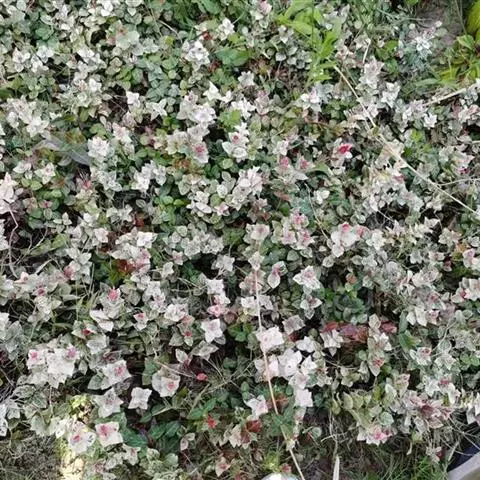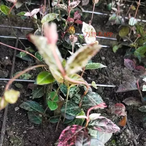 五彩络石为常绿蔓性藤本植物。匍匐生长,茎具白色乳汁,叶对生,革质,卵形,长3厘米,宽2厘米。喜阳耐…
