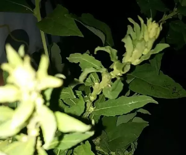二歧聚伞花序腋生或顶生,花多朵组成圆锥状,与叶等长或较长;花白色,芳香;总花梗长2-5厘米,被柔毛,老时渐无毛;苞片及小苞片狭披针形,长1-2毫米;花萼5深裂,裂片线状披针形,顶部反卷,长2-5毫米,外面被有长柔毛及缘毛,内面无毛,基部具10枚鳞片状腺体;花蕾顶端钝,花冠筒圆筒形,中部膨大,外面无毛,内面在喉部及雄蕊着生处被短柔毛,长5-10毫米,花冠裂片长5-10毫米,无毛;雄蕊着生在花冠筒中部,腹部粘生在柱头上,花药箭头状,基部具耳,隐藏在花喉内;花盘环状5裂与子房等长;子房由2个离生心皮组成,无毛,花柱圆柱状,柱头卵圆形,顶端全缘;每心皮有胚珠多颗,着生于2个并生的侧膜胎座上。