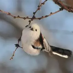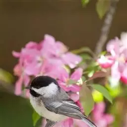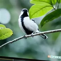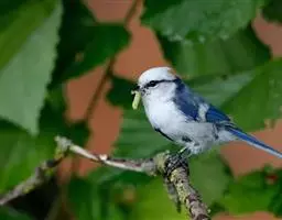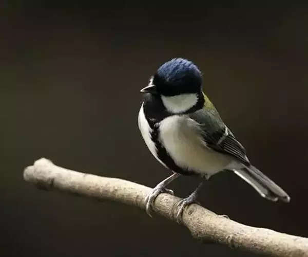 大山雀是各地山林、果园里极为常见的一种小鸟。它的个子比麻雀略小,头部呈光泽的蓝黑色,衬托着洁白的两颊,好像京剧脸谱中的大白脸,所以又称白脸山雀。它的背面为蓝灰色,腹面白色,中央纵贯着宽阔的黑纹。