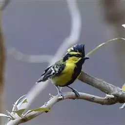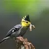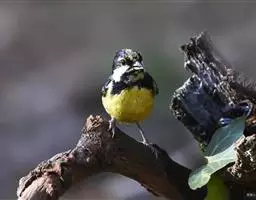 黄颊山雀是雀形目山雀科山雀属鸟类。雄鸟额、头顶和羽冠为具有光泽的黑色;额基、眼先、眉纹、脸颊和耳羽等头颈侧为鲜艳的明黄色;贯眼纹黑色;后颈亦具一黄斑;上体灰黄绿色,羽缘黑色;尾羽黑色具蓝灰色羽缘,基部白色;下体颏、喉至上胸为富有金属光泽的黑色;胸下有一黑色宽中央纵纹,一直延伸至肛周;其余下体白色;胸侧和两胁染黄色或蓝灰色;虹膜暗褐色;喙黑色;脚铅蓝灰色至铅黑色。雌鸟似雄鸟,但上体光泽较弱,胸腹部黑色纵带不明显。黄颊山雀分布于亚洲东南部地区,在中国分布于华中、华南和西南等地。栖息于中低山常绿阔叶林、针叶林和混交林中,也见于山麓疏林灌丛草坡或茶园、果园等地。常成对或小群活动,也和大山雀等其他小型鸟类混群,活跃地在乔灌木枝叶间飞翔跳跃。主食鳞翅目和鞘翅目等昆虫,兼食植物种实。繁殖期在4-6月,营巢于树洞、岩隙或墙缝中。窝卵数为3-7枚,卵灰白色且有红褐斑,雏鸟晚成。黄颊山雀被列入中国林业局200