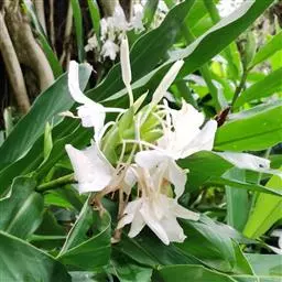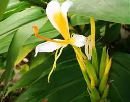 姜花(拉丁文名:Hedychium coronarium Koen)又名野姜花,是姜科姜花属的淡水草本植物,高1-2米,花序为穗状,花萼管状,叶序互生,叶片长狭,两端尖,叶面秃,叶背略带薄毛。不耐寒,喜冬季温暖、夏季湿润环境,抗旱能力差,生长初期宜半阴,生长旺盛期需充足阳光。土壤宜肥沃,保湿力强。姜花有清新的香味,放于室内可作天然的空气清新器。色泽圆融,一般为白色花朵。盆栽可供观赏,白色花卉如蝴蝶,所以又称蝴蝶姜、白蝴蝶花等。原产亚洲热带,印度和马来西亚的热带地区,大概在清代传入中国。另外,姜花是古巴和尼加拉瓜的国花。