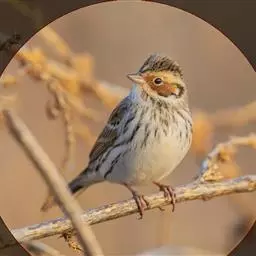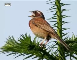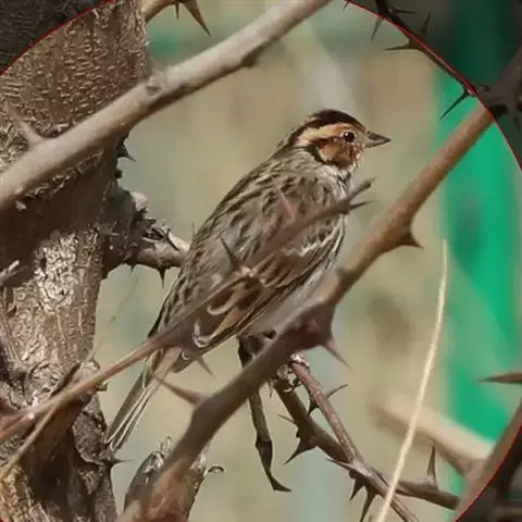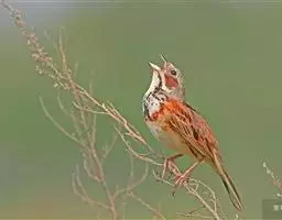 栗斑腹鹀:属小型鸣禽。体重19-25克,体长145-167毫米。头顶至背栗红色,眼先和颧纹黑褐色,…