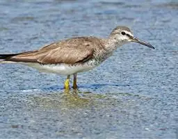 白腹海鹦,前趾间有蹼膜,后趾缺如。翅窄而短小,尾短。体羽黑白二色,雌雄羽色相似