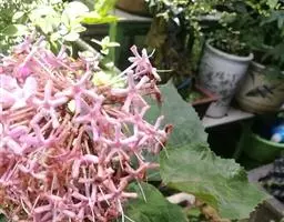 轮伞花序多花,圆球伏,花时径达2厘米,沿茎及分枝形成宽而多头的圆锥花序;苞叶叶状,较小,生于茎及分枝近顶部者退化成苞片状;苞片针状,长3-5毫米,被具节长柔毛及腺柔毛;花梗长2-5毫米,密被腺柔毛。花萼圆筒形,花时长约6毫米,宽约1毫米,具13脉,脉上被具节长柔毛及腺微柔毛,萼内喉部具疏刚毛,果时基部一边膨胀,宽至2毫米,上唇3齿,齿三角形,具尾尖,下唇2齿,先端芒尖。花冠紫红色,长约8毫米,冠筒伸出于花萼,外面被微柔毛,冠檐二唇形,上唇直伸,先端微缺,下唇3裂。雄蕊不露出,后对雄蕊短且花药小,在上唇穹隆下,直伸,前雄蕊长超过下唇,花药正常。花盘平顶。
