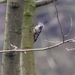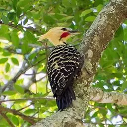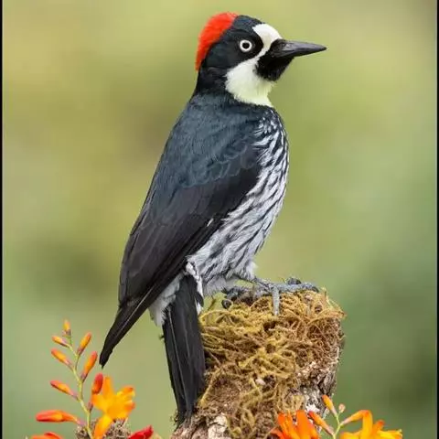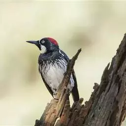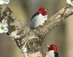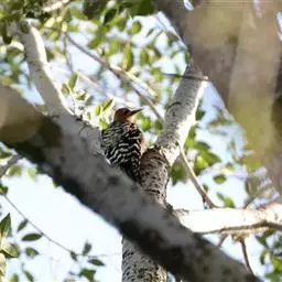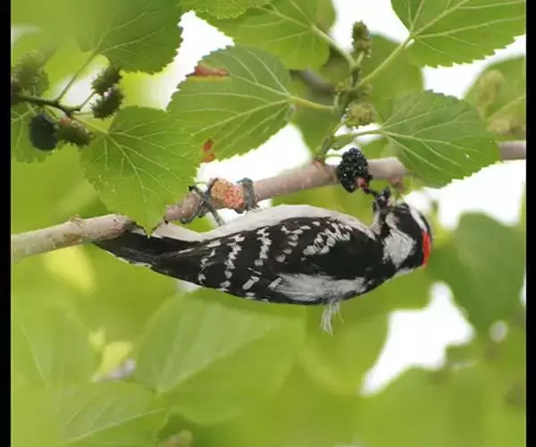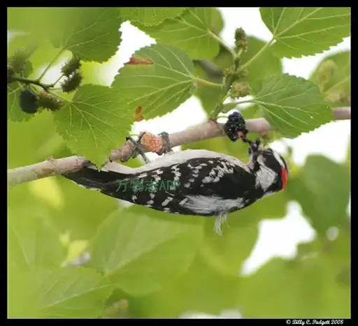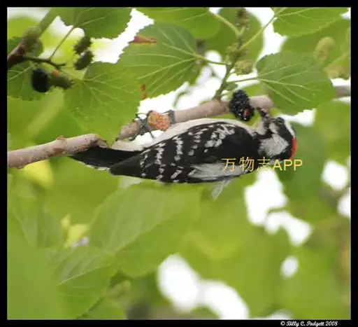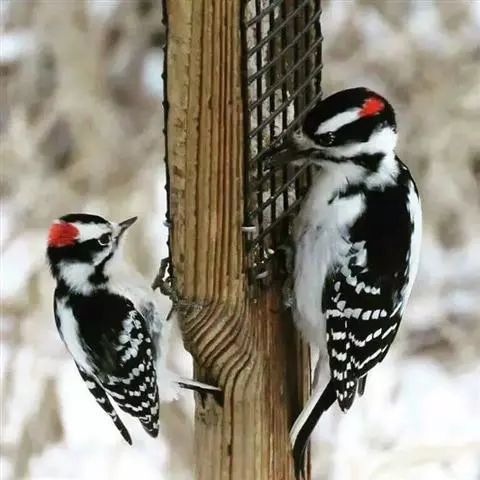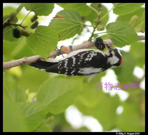 绒啄木鸟,北美洲最小的啄木鸟,白腹黑背和黑项,黑翼上有白色斑点。头部有黑白相间的条纹,尾巴短小,雄鸟的头部有红色羽毛。绒啄木鸟原是阿拉斯加的居民,现分布加拿大和南部遍及美国的西南。 首选的栖所包括森林地、公园和庭院。