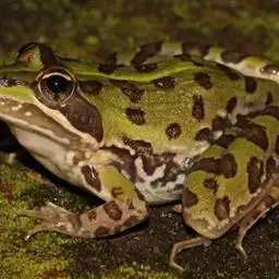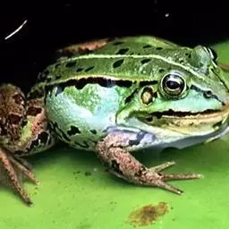 黑斑蛙(学名:Pelophylax nigromaculatus),是蛙科、侧褶蛙属的两栖动物。黑斑蛙雄性略小,头长略大于头宽,吻钝圆而略尖,吻棱不显,前肢短,后肢较短而肥硕,胫关节前达眼部,趾间几乎为全蹼,成体背部颜色为深绿色、黄绿色或棕灰色,具有不规则的黑斑,腹部颜色为白色、无斑。