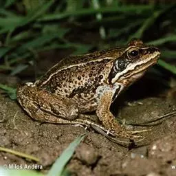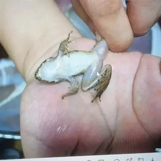 黑斑蛙成蛙体长一般为7-8厘米,体重为50-60克,最大个体重为100克左右。一般情况下,同龄黑斑蛙的雌蛙比雄蛙大。黑斑蛙的身体分为头、躯干和四肢三部分,成体无尾。