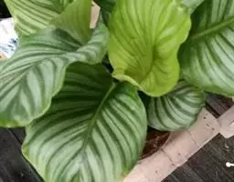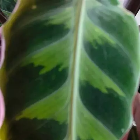 双线竹芋(学名:Calathea sanderiana (Sander) Gentil):竹芋科,肖竹芋属多年生常绿草本观叶植物。株高可达100厘米,叶片长椭圆形,头状花序,小苞片膜质;萼片近相等;花冠管与萼片硬革质,蒴果开裂为3瓣,种子三角形。