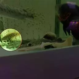 病害特点:该病由水霉菌或绵霉菌感染伤口引起,主要发生于水环境恶劣或水温较低(15~20℃)时,特别是阴雨天,水霉菌多是腐生性,大多因捕捞、运输、体表寄生虫侵袭等导致发病,可造成大批死亡。乌鳢水霉病在乌鳢生长发育的各个阶段都会发生,是乌鳢越冬期间最易感染危害较重的疾病。患病鱼鱼体消瘦,摄食能力降低或厌食。发病初期症状不明显,仅体表局部有一些灰白色。随着病原体的蔓延,体表出现点状血斑,病灶部位黑色素消褪,出现灰白色区域。鱼体失去光泽,离群独游,常滞留在水面或水草丛中、食台旁边。严重时,鱼体病灶部长出棉絮状的菌丝,组织坏死。病鱼体表粘液增多,焦躁不安,游动迟缓,食欲减退,最后瘦弱而死。