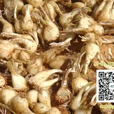 藠头为无性繁殖作物,以鳞茎作种球,秋季栽培的种球内已宿存有数个分球芽,栽后不久即萌发生长。分球芽不断长出新叶,当年都能形成大小不等的分球,每个分球有叶2-4片。