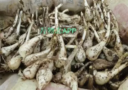 鳞茎数枚聚生,狭卵状, 藠头 粗(0.5-)1-1.5(-2)厘米;鳞茎外皮白色或带红色,膜质,不破裂。