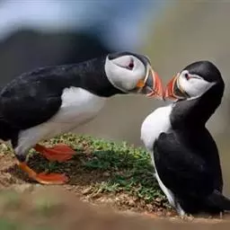 北极海鹦是海雀科的一种海鸟,体长26-38厘米,体重约490克。冠为黑色,脸颊灰色,腹部白色。喙大…